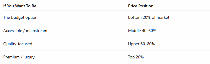 Most sustainable businesses position in the middle-to-upper range. Avoid racing to the bottom.