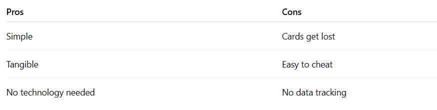 Keep a master list of cards issued (optional). When a card is full, collect it and provide the reward. Simple tracking.