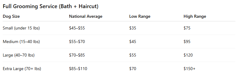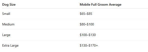 Mobile groomers typically charge 20–40% more than salon prices for the convenience factor.