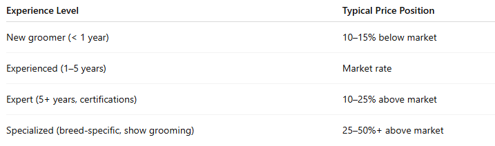 Many groomers add 10–25% for same-day or emergency appointments. This is reasonable in most markets.